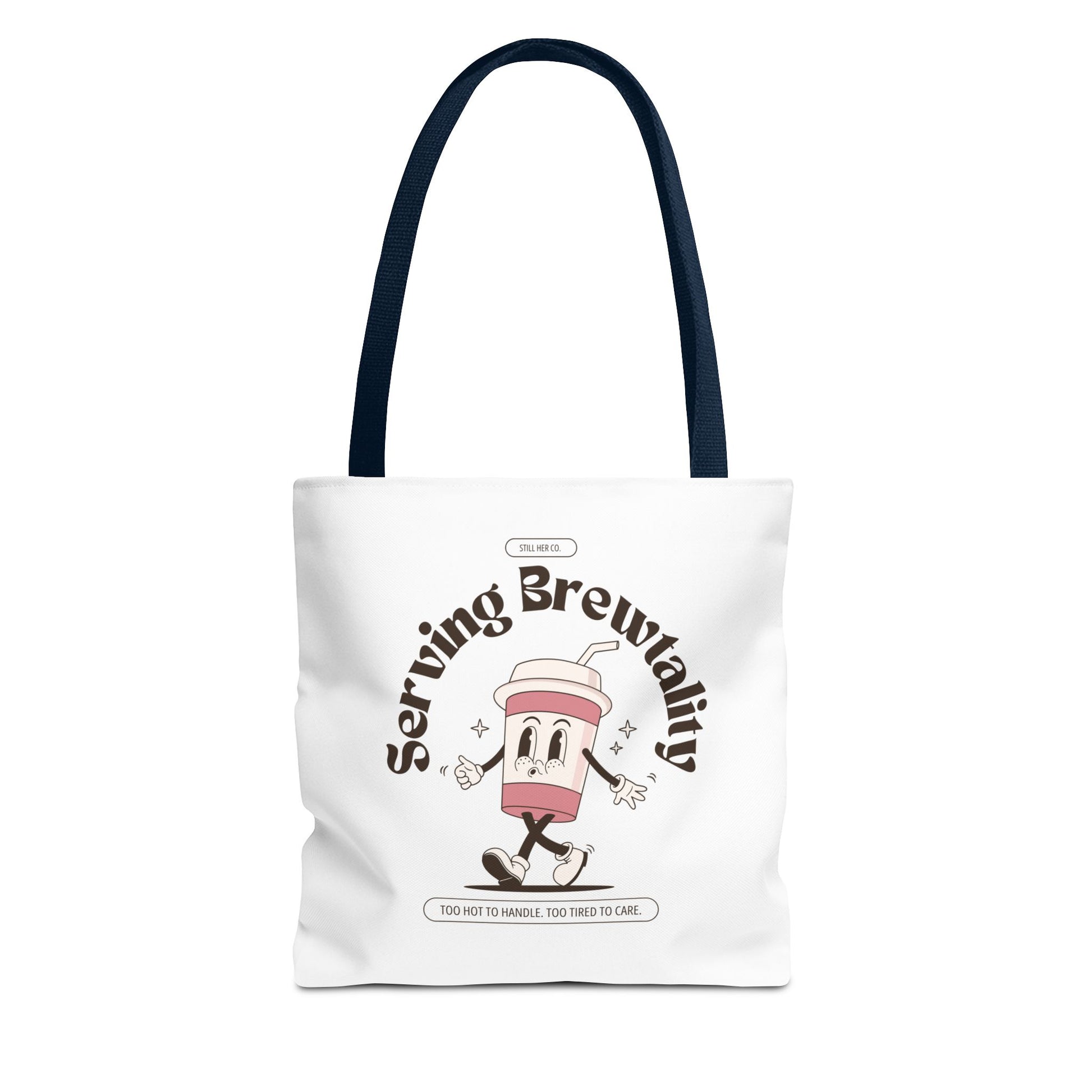 Serving Brewtality Tote Bag - Your new favorite catch-all for chaos, caffeine, and everything in between.