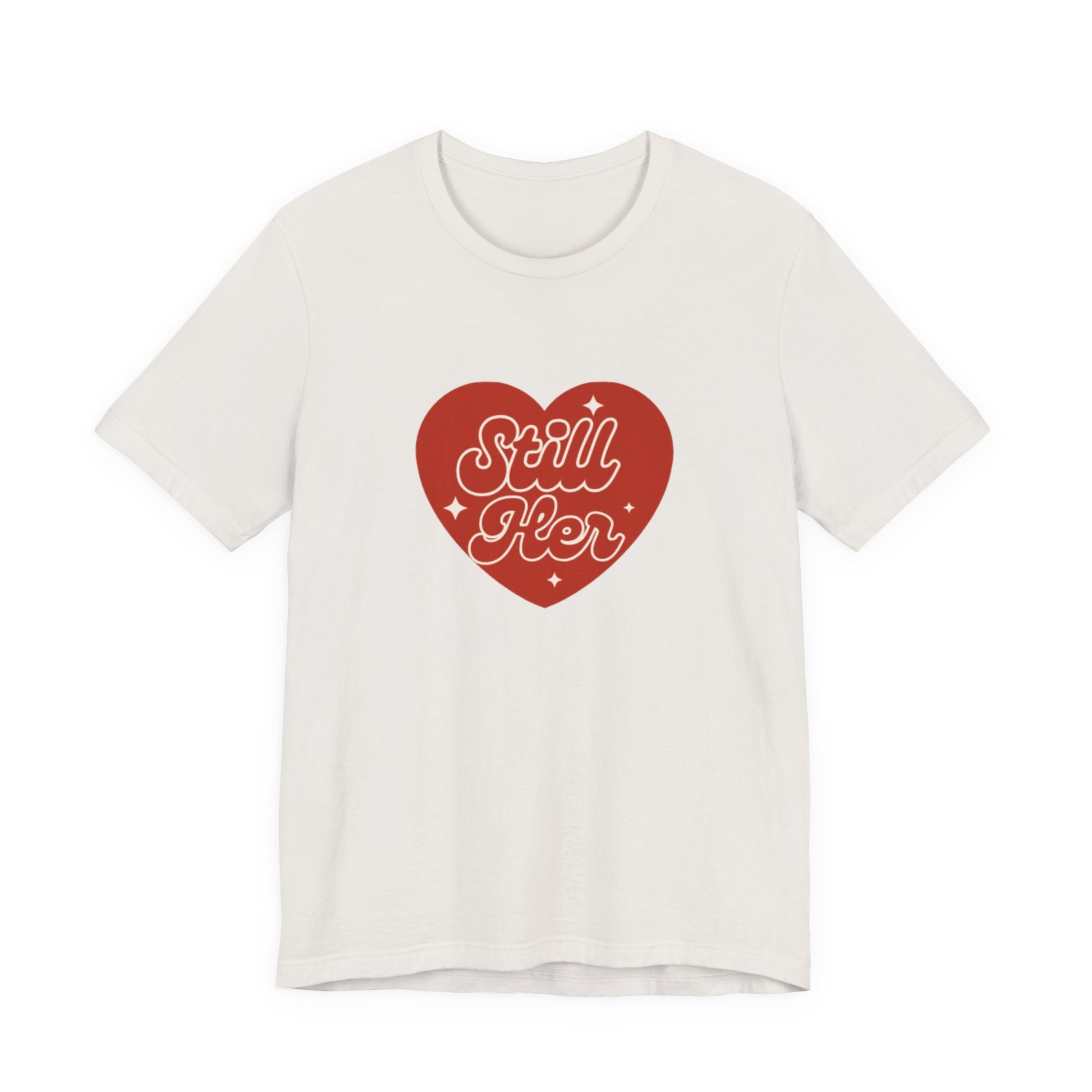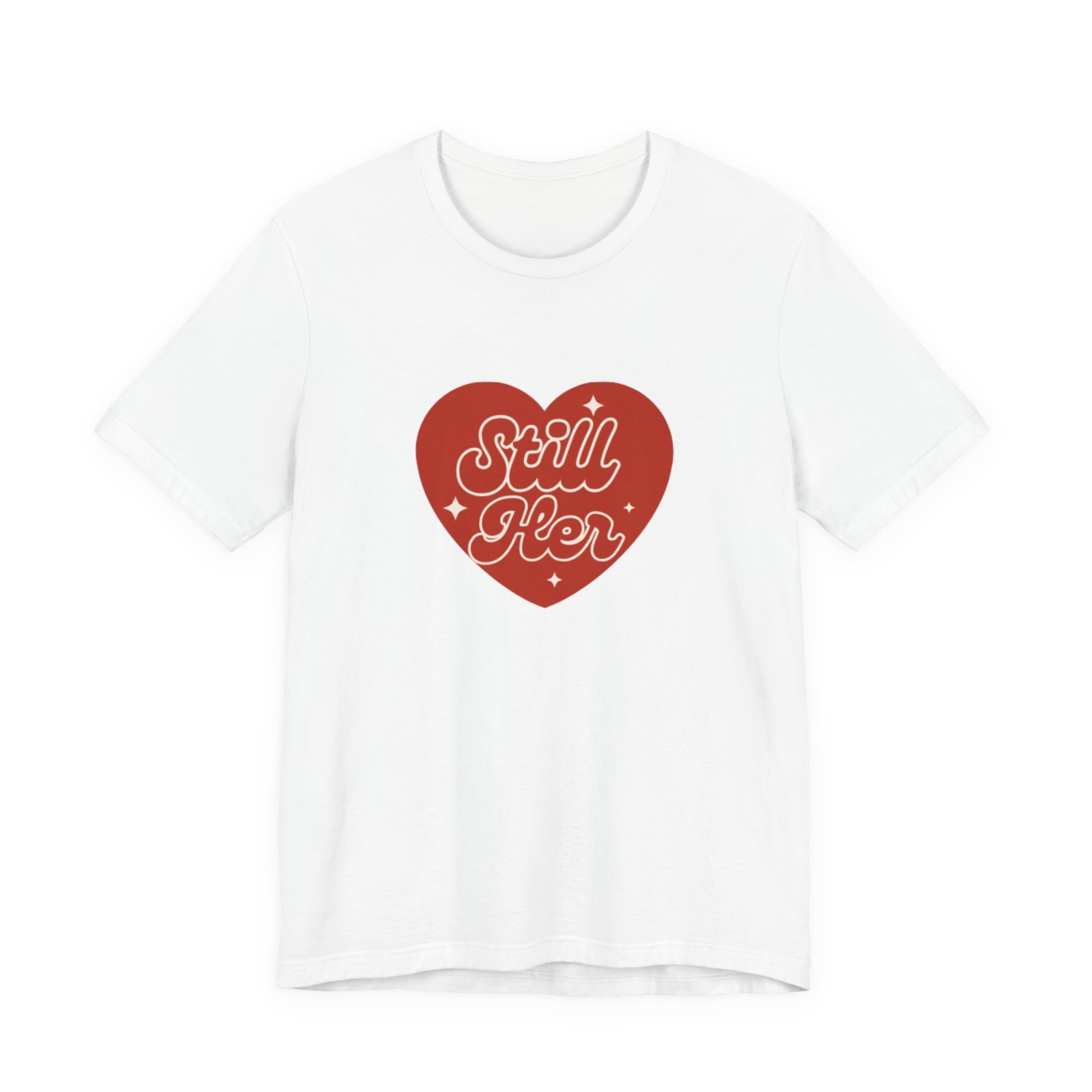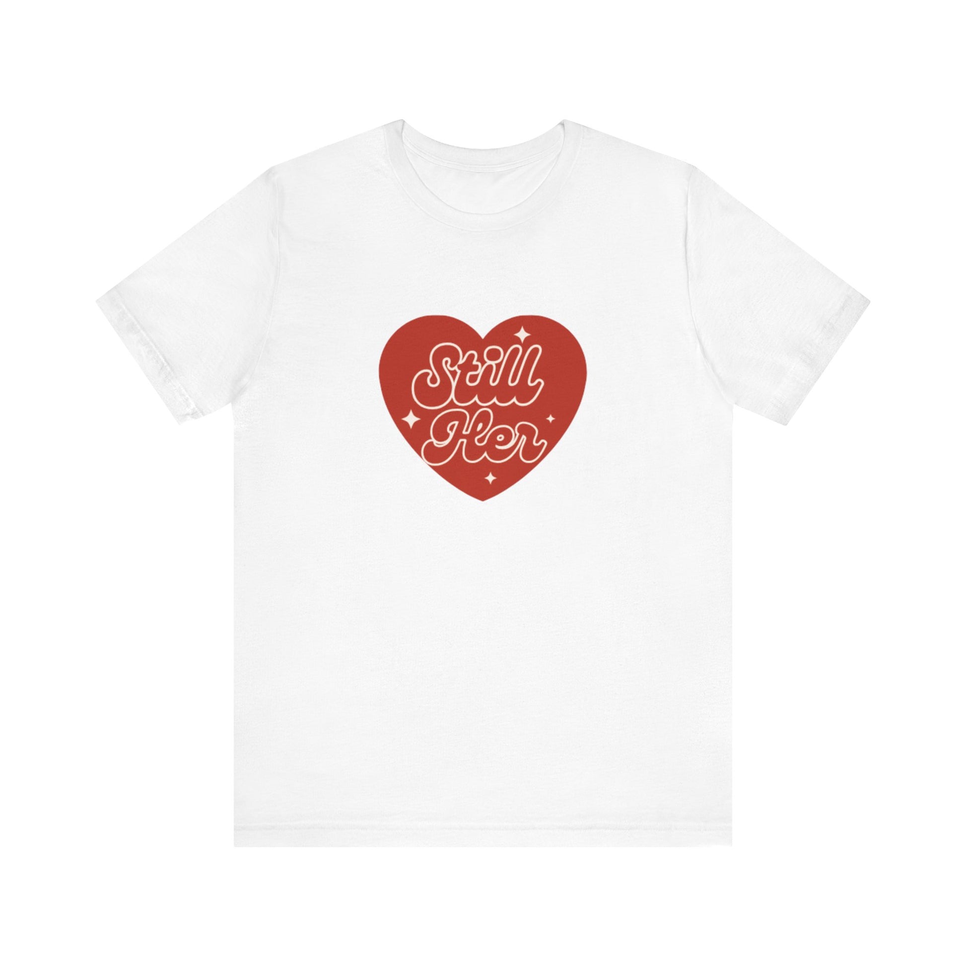 A classic unisex jersey short sleeve tee featuring the phrase 'Still Her' from Still Her Co. The tee is made with 100% lightweight cotton and has a retail fit, making it perfect for casual and semi-formal settings. It is ideal for active and leisure wear, and the tear-away label minimizes skin irritations. This tee is relevant for adults and is REACH Certified.