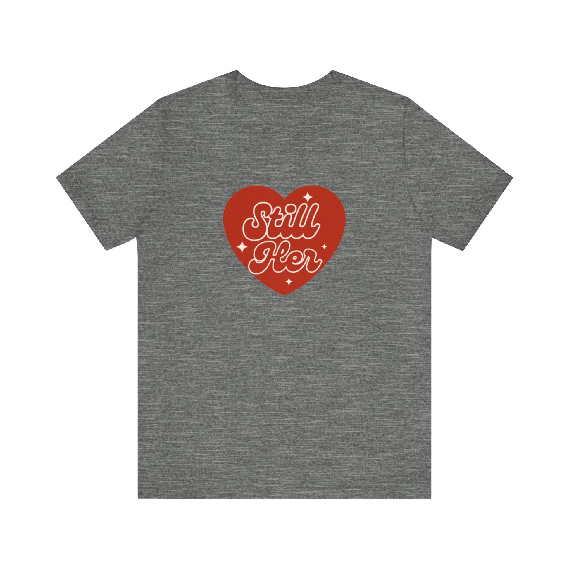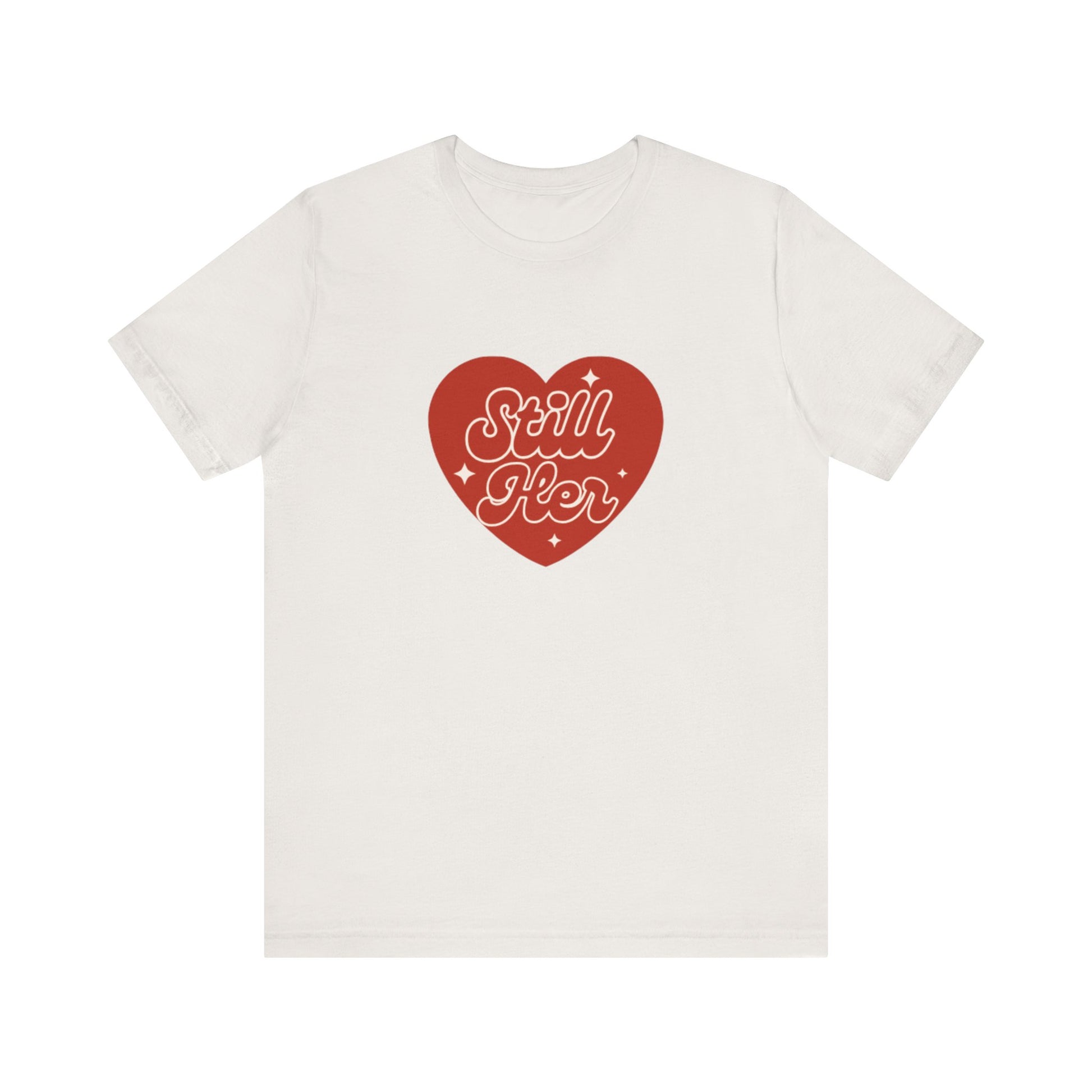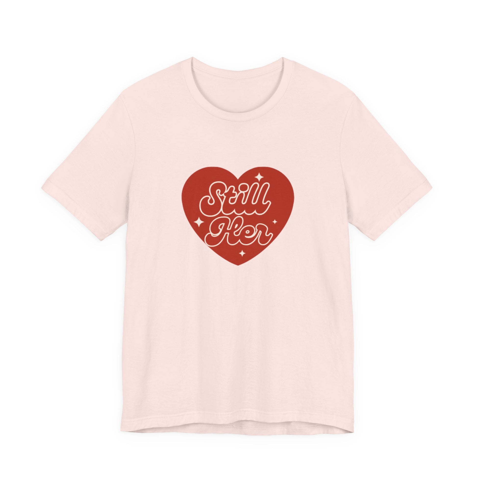 A classic unisex jersey short sleeve tee featuring the phrase 'Still Her' from Still Her Co. The tee is made with 100% lightweight cotton and has a retail fit, making it perfect for casual and semi-formal settings. It is ideal for active and leisure wear, and the tear-away label minimizes skin irritations. This tee is relevant for adults and is REACH Certified.